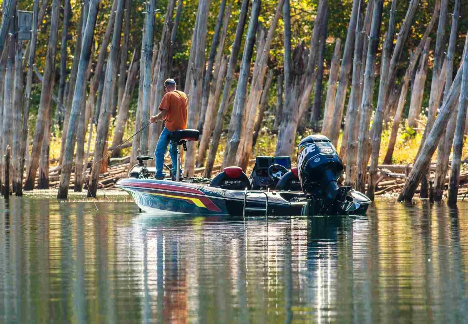 Color is an attribute of balance. It can be of motion, too. I got lucky to find the fisherman wearing an orange-brownish T-shirt that goes along with the color of the wood and is related to the yellow, not to mention that his boat has an orange-brown stripe. But have another look at the waverunner in the top photo. If it were blue, it wouldn’t stand out as it does. It wouldn’t take position in the center, complementing the blue of the water, with such bold balance as that vivid yellow does. The yellow, however, does not increase the sense of the vehicle’s speed. It draws attention to itself—away from the spray conveying motion. Despite the waverunner’s being balanced in the photo’s center, that bright yellow may give you the awkward sense of stasis.