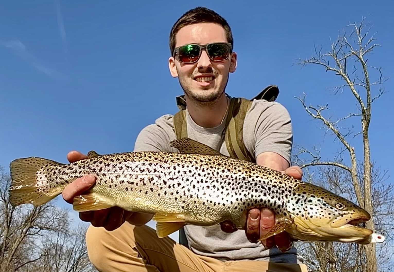 Brenden Kuprel’s brown trout from the Raritan River’s Island Farm Weir in March.